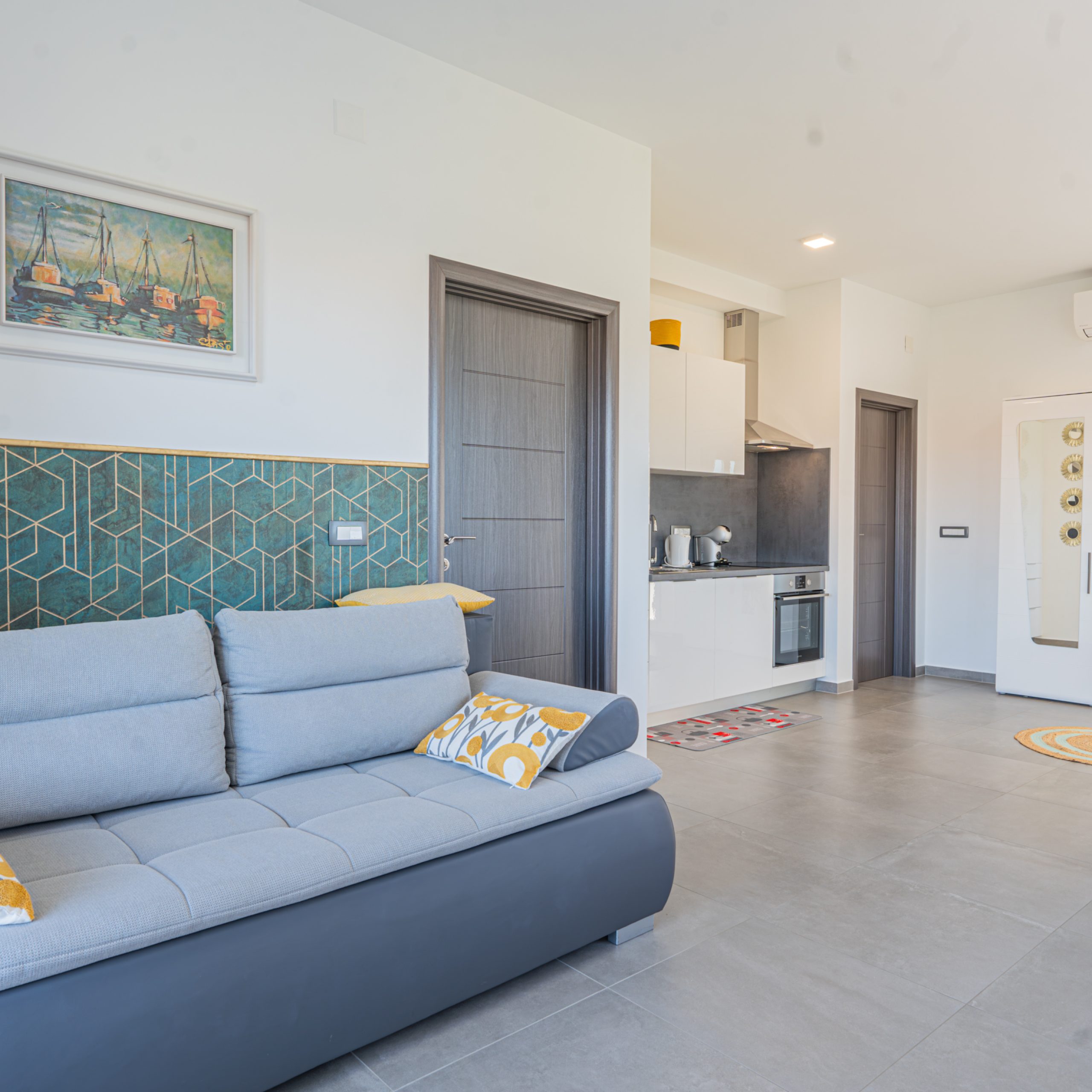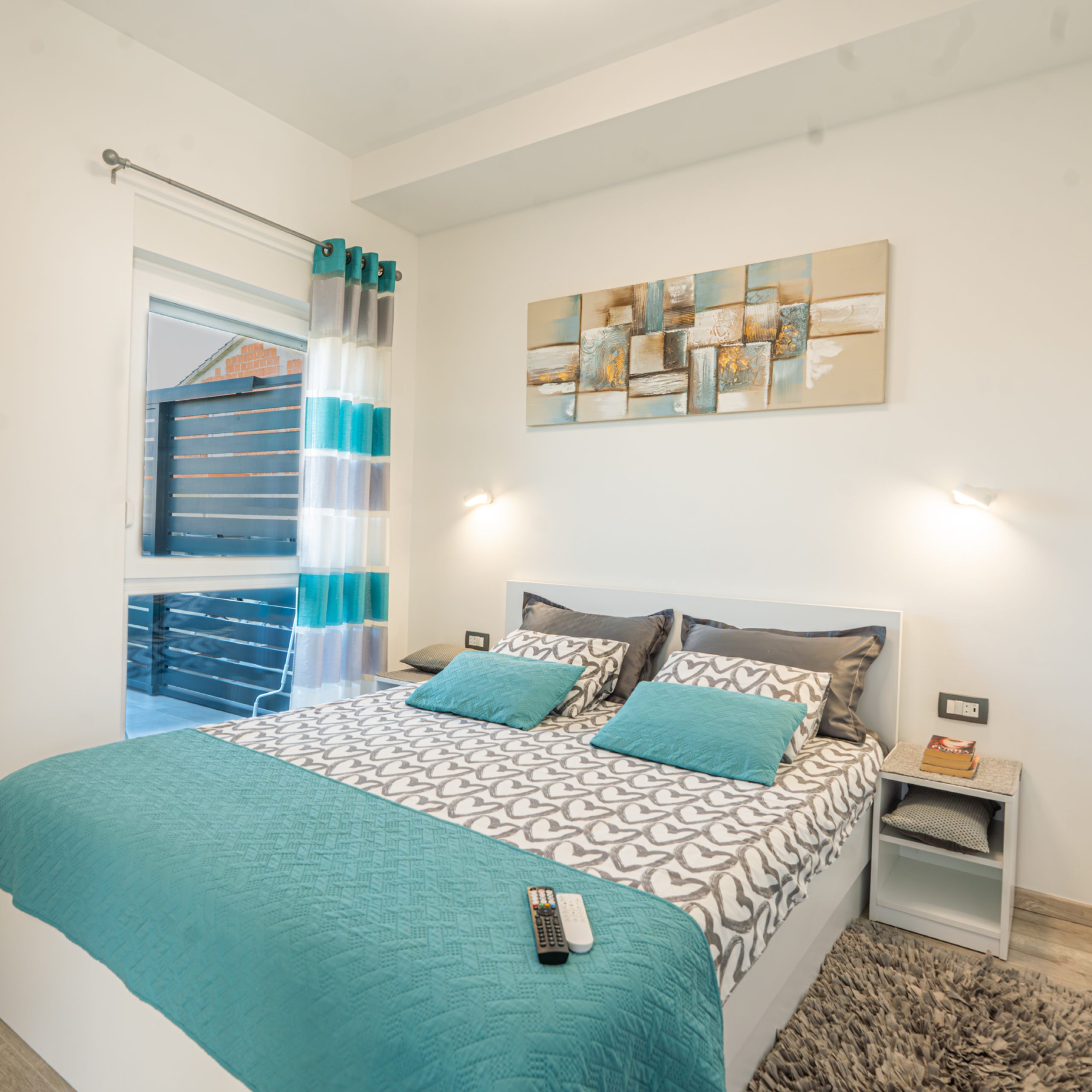Prostrani apartmani (A1 i A2) imaju po jednu spavaću sobu s krevetom vel.  160×200, dnevni boravak sa krevetom  na razvlačenje.