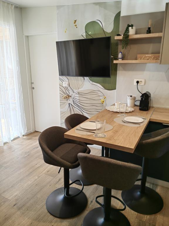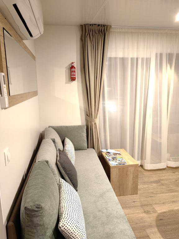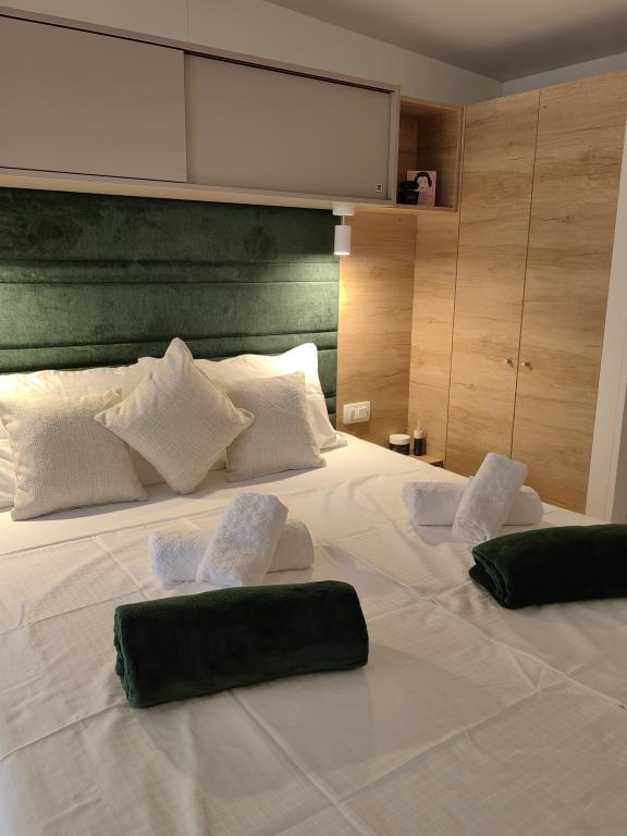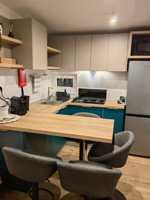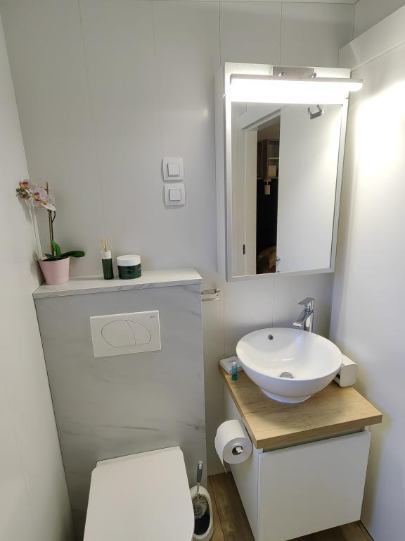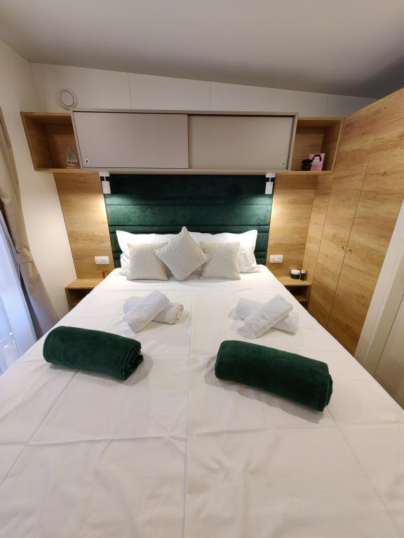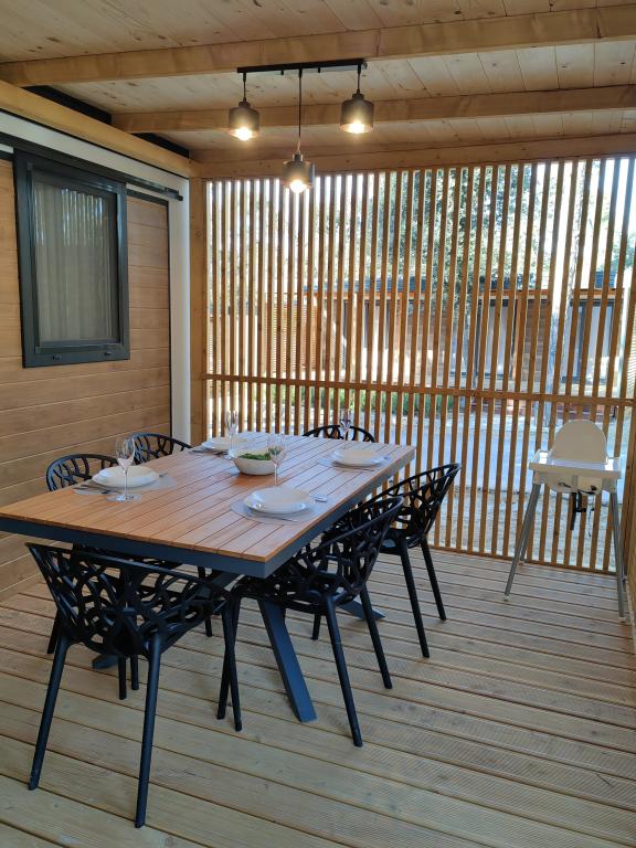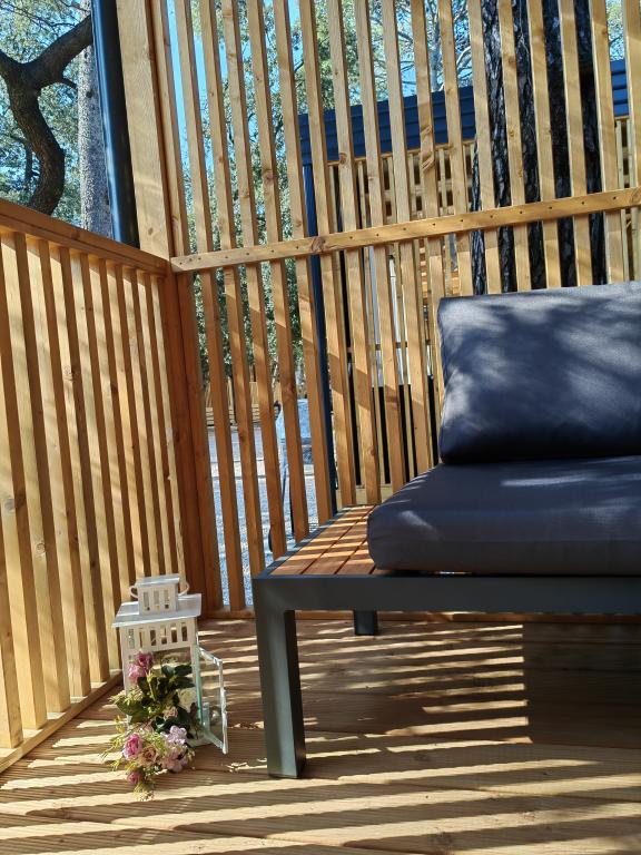 Uživajte u prekrasnom okruženju ovog romantičnog mjesta u prirodi. Potpuno opremljena mobilna kućica “Tonka” je potpuno nova (2024.), moderno opremljena, mobilna kućica Kapacitet: 4+2 32 m2 1 spavaća soba s bračnim krevetom 1 spavaća soba s dva odvojena kreveta 2 kupaonice kuhinja i dnevni boravak s kaučem s funkcijom ležaja (2 osobe) natkrivena terasa sa blagavaonskim stolom (6 osoba) lounge zona Potpuno opremljena: – klima uređaj – plinski štednjak – hladnjak s odjeljkom za zamrzavanje – mikrovalna pećnica – aparat za kavu – kuhalo za vodu – TV – besplatni WiFi – sušilo za kosu – ručnici i posteljina – roštilj na plin – parkirno mjesto