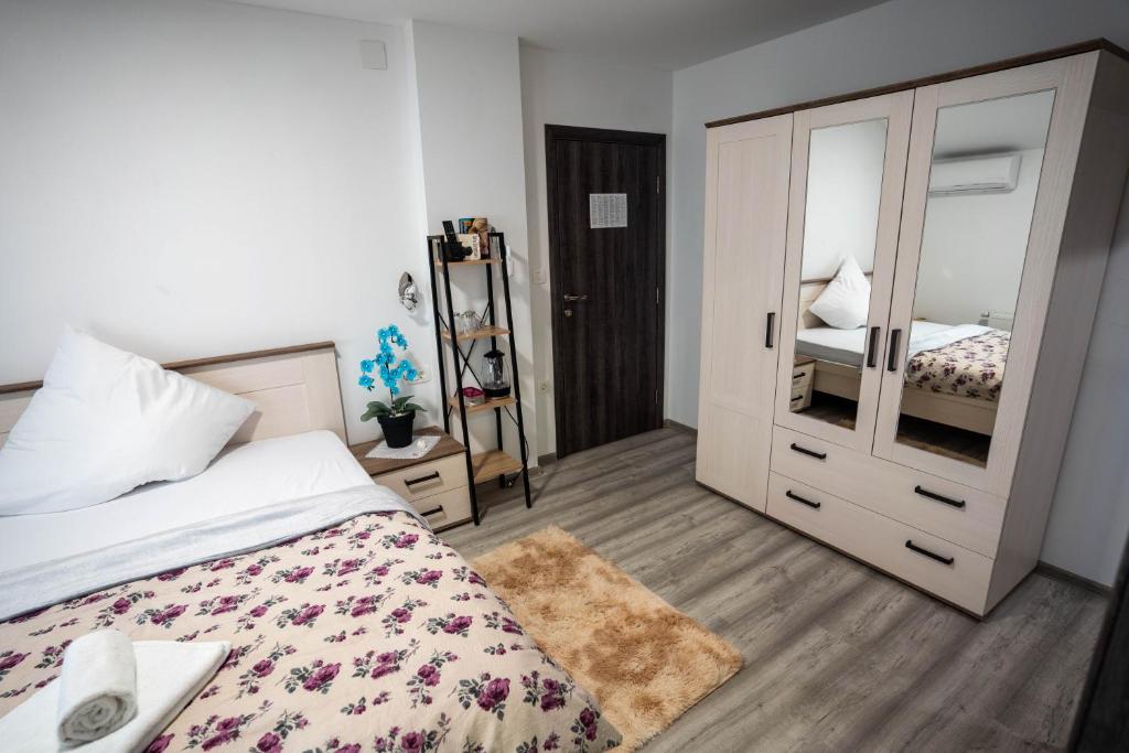 🛏️ Soba od 30 m² opremljena je velikim bračnim krevetom i jednim dodatnim krevetom, što je čini savršenom za ugodan boravak do tri osobe. Prostrana terasa s pogledom na vrt i planinu pruža mirnu atmosferu za jutarnju kavu ili večernje opuštanje.